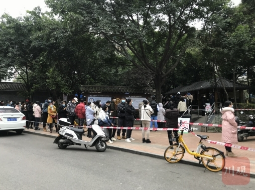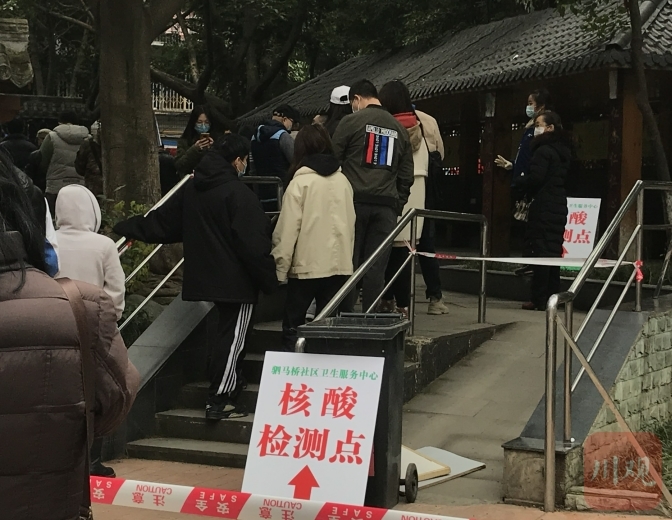 12月8日下午3点,四川在线记者来到成都市金牛区驷马桥社区卫生服务中心核酸检测点,现场已有数百人在此排队接受检测,队伍虽长,但井然有序。