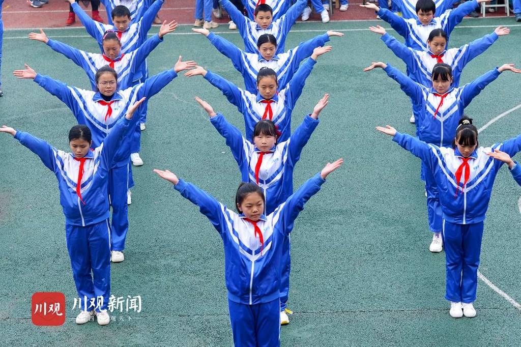 12月8日下午,南充市蓬安县新园小学,随着阵阵悠扬而明快的阳光课间操旋律,该校的14支队伍500余名学生随乐而动,伴律舞操。