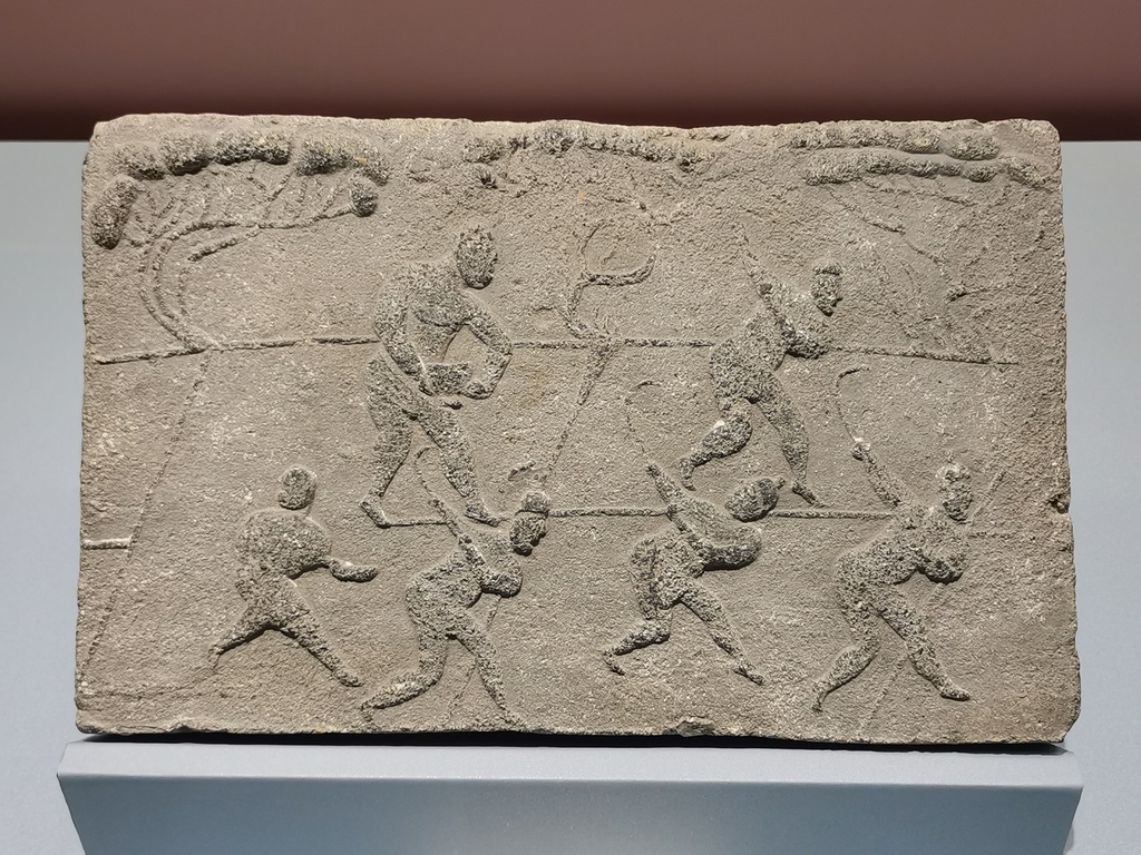 好了,除了这些名字不太好认的文物,此次展览还展出了各种汉代画像砖,展示天府之国富庶的生活场景。