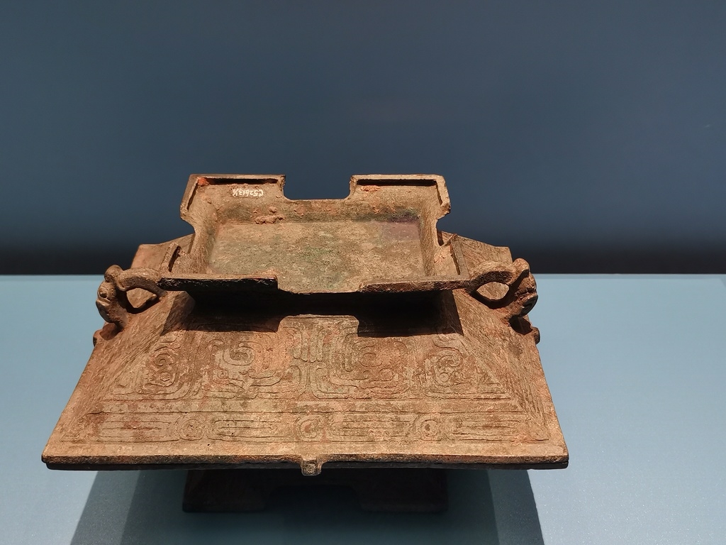 簠[fǔ],古代祭祀和宴飨时盛放黍、稷、粱、稻等饭食的器具,《周礼·舍人》:“凡祭祀共簠簋。” 簠的基本形制为长方形器,盖和器身形状相同,大小一样,上下对称,合则一体,分则为两个器皿。簠出现于西周早期,主要盛行于西周末春秋初,战国晚期以后消失。
