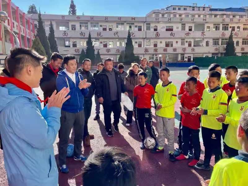 捐赠仪式结束后,四川省足球名宿邹侑根和城市足球集团足球训练顾问黄凌丰一同为东方红小学的校足球队带来了一场别开生面的足球训练课。从熟练球感的传带练习到有针对性的分组对抗,校足球队的队员们在两位指导的带领下专心地投入到了训练中。足球训练课后,城市足球集团和四川优必选的工作人员分别到三位彝族小队员的家中进行拜访,鼓励小球员热爱足球、热爱运动,并为小队员送上了精心准备的球队礼物。
