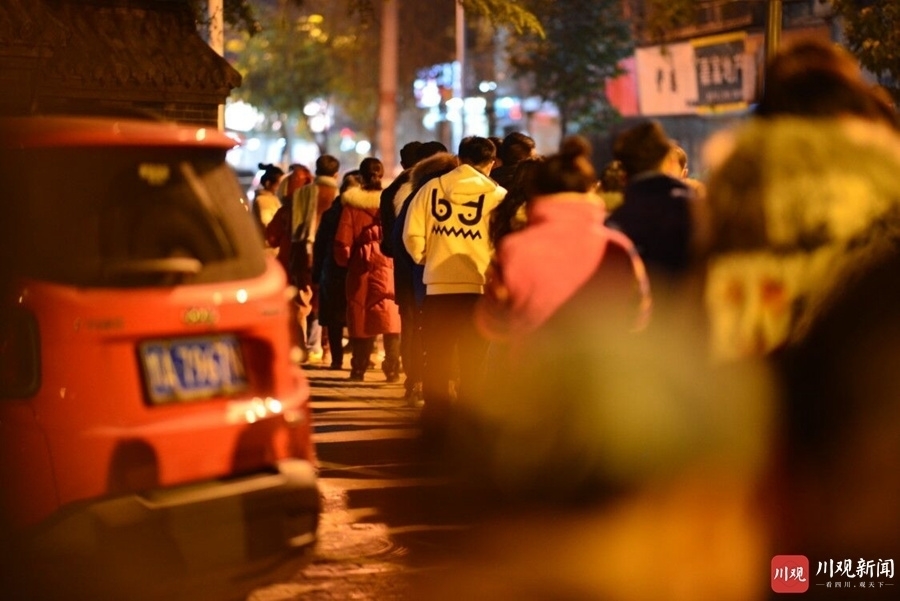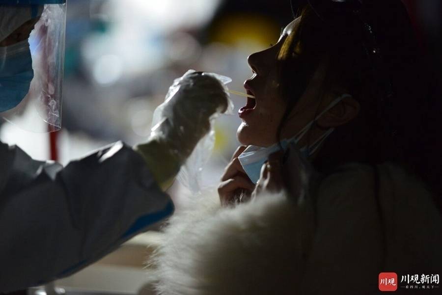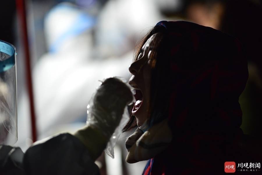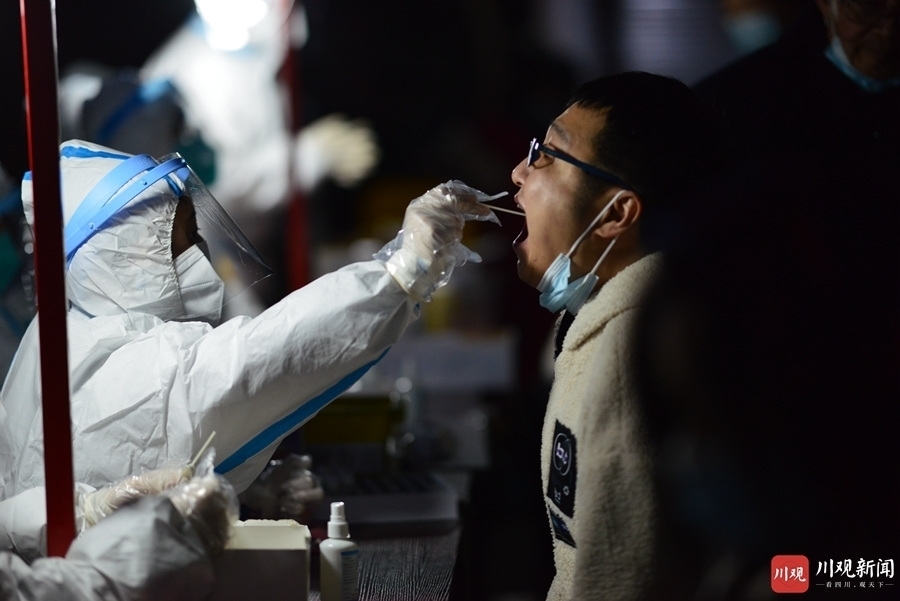 12月9日凌晨,在成都市金牛区驷马桥社区卫生服务中心,由医务工作者、社区人员、民警和志愿者组成的核酸检测点开启了通宵检测的模式。在寒冷的夜里,市民排起了长龙,秩序井然地等候核酸检测,他们为成都抗击新冠疫情共同努力着!