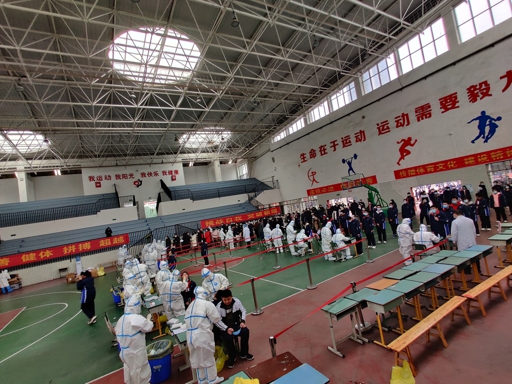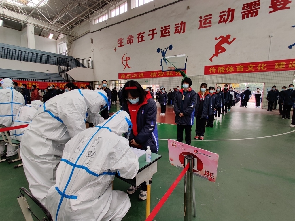 “今早,我们接到郫都区防控指挥部的要求后,就进行了充分准备,用最快速度对学校室内体育馆进行消杀后,设置成临时检测点,从中午12点开始,全校42个班2043名学生,299名教职员工分组分班同测,在3个小时内完成了核酸检测,可以说效率非常高了。”郫都四中校长蒋春鹏向记者介绍道。作为低风险区的学校,郫都四中从今年疫情伊始,就严格按照上级部门的两案九制进行疫情防控管理,针对本次疫情,学校除了继续严格进行常态化防疫管理,还针对本次突发疫情,对学生进行了相应的心理辅导。