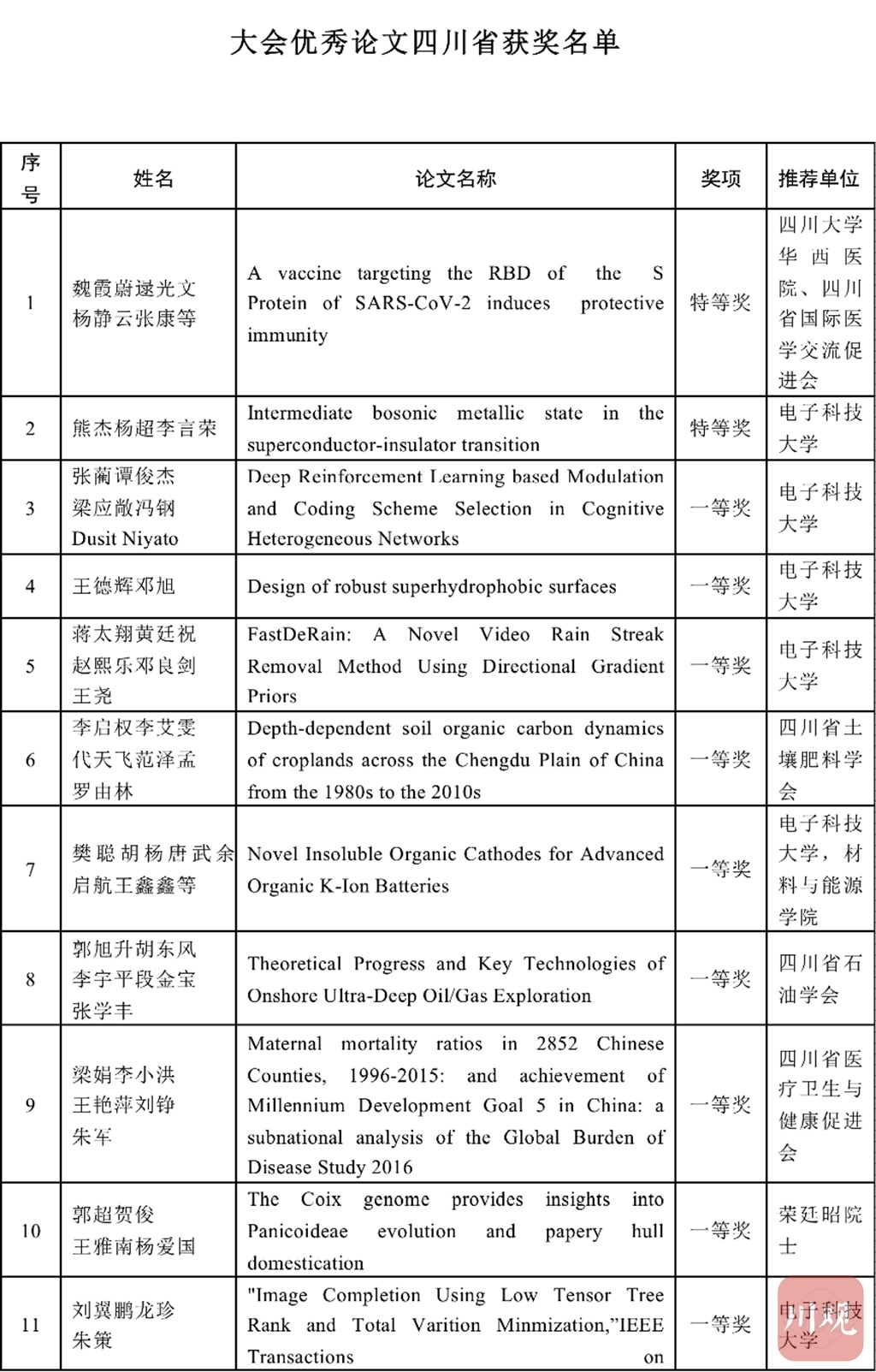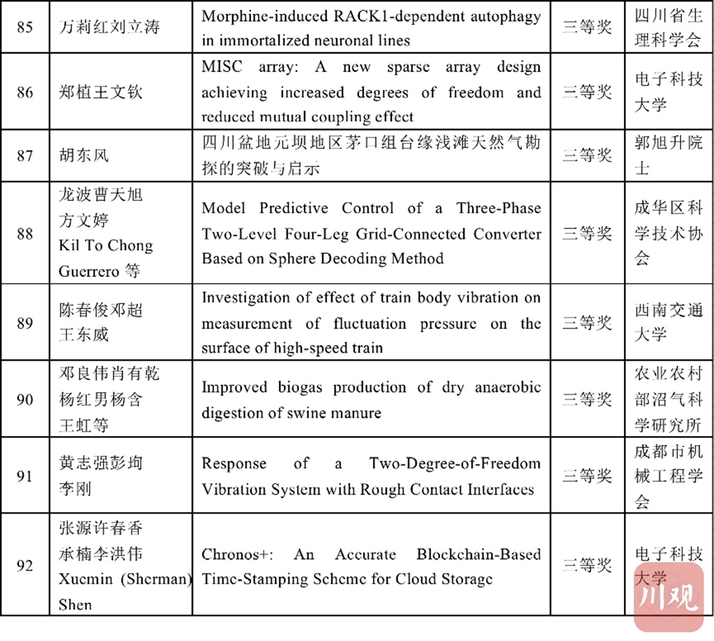 12月10日,首届川渝科技学术大会暨四川科技学术大会在成都召开。作为此次大会的重磅环节,184篇首届川渝科技学术大会优秀论文正式发布。优秀论文由四川省科协、重庆市科协联合颁发“首届川渝科技学术大会优秀论文”证书,并在大会上隆重颁奖。