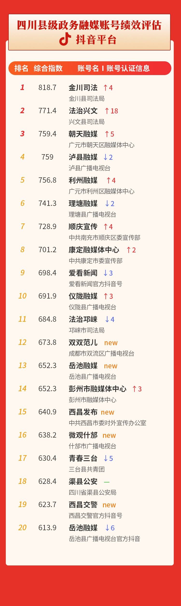 11月“四川县级政务融媒账号绩效评估”详情如下: