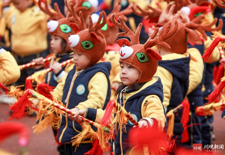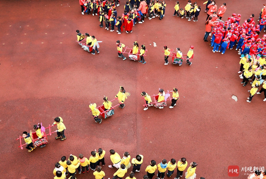 2020年12月10日,四川省华蓥市实验幼儿园举办以“携手享快乐,运动伴成长” 为主题的趣味文体活动,娃娃们通过参加当地传统文体活动“滑竿抬幺妹”、“打连响”和 “老鹰捉小鸡”、幼儿体操等趣味活动项目,增强团队、竞争意识,体验运动带来的快乐,以健康的体质战胜寒冬。