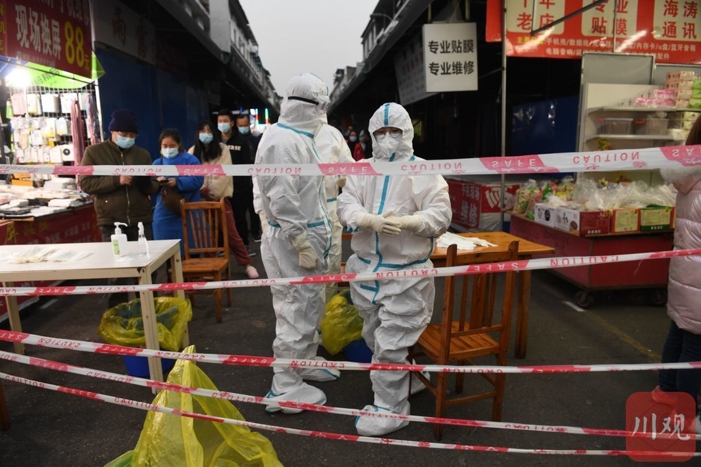 市场门口也有隔离线,四川在线记者看到里面的摊点依然在营业,不少路过的市民询问能否进去买菜,进去了还能否出来,“只要做了核酸检测就可以,走专门的通道。”隔离线内一名工作人员说。