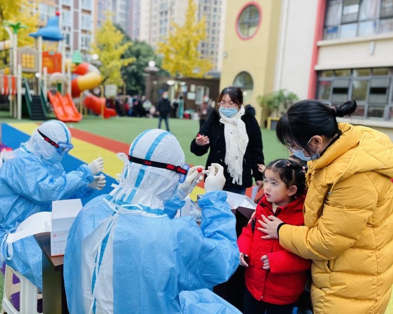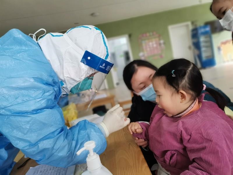 成都市第五人民医院门诊部护士莫琳君是医院第四批支援郫都核酸检测队伍中的一员,12月9日下午2:30到4:40,她与呼吸与危重症医学科曾春华医生一组,完成了94位幼儿园小朋友的核酸采样工作。莫琳君说,给小朋友核酸采样速度要比成人慢一些,小朋友们最小3岁,最大的也才6岁,大点的小朋友还比较配合,小点的孩子就要先做下心理沟通才行。