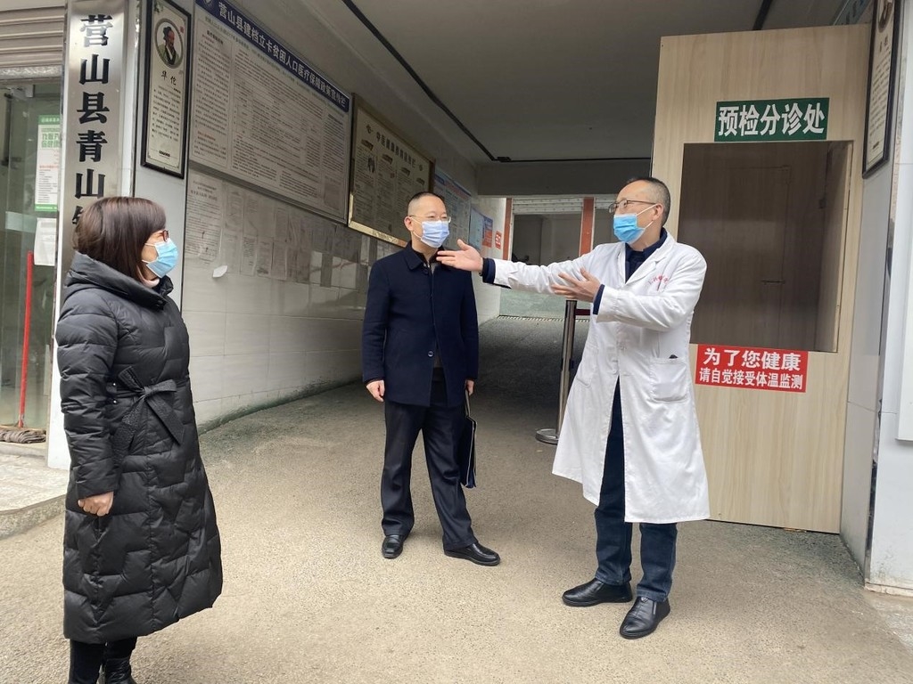 图为营山县纪检监察干部在基层卫生院督导医疗卫生领域突出问题专项整治工作