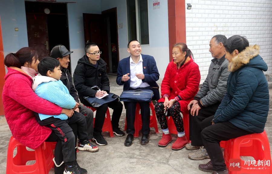 12月11日, 眉山天府新区龙马镇纪检干部(左三、左四)正在农家院坝收集问题线索。