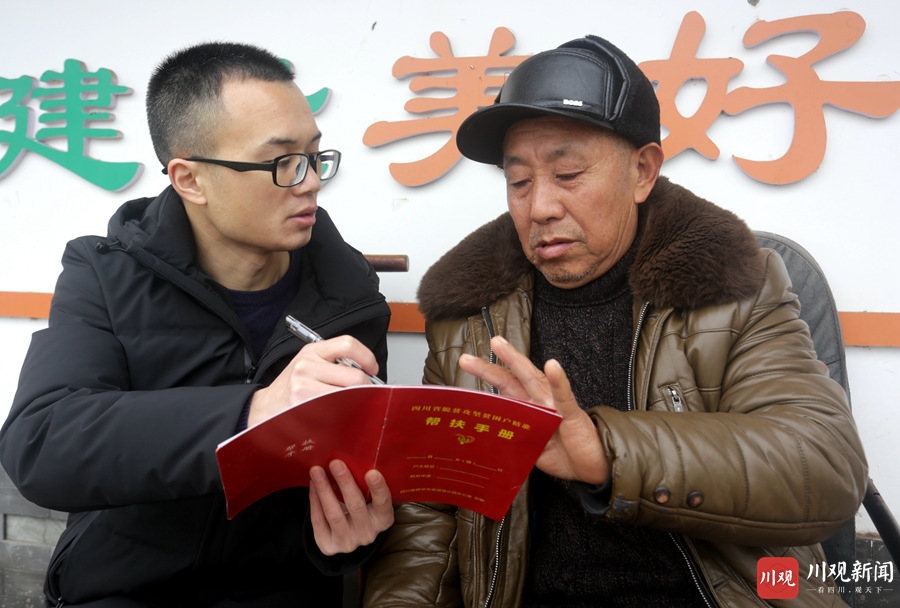 12月11日, 眉山天府新区龙马镇纪检干部(左)正在入户了解扶贫资金使用情况。