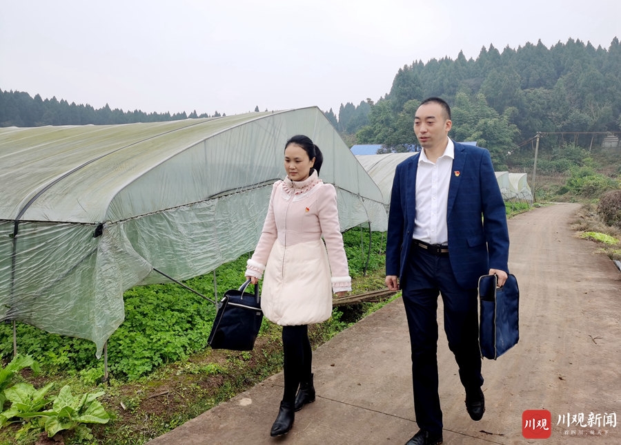12月11日, 眉山天府新区龙马镇两名纪检干部行走在乡间,开展入户走访。
