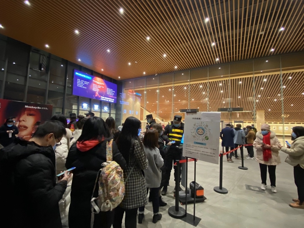 12月11日晚,位于青羊区的四川大剧院门口陆陆续续来了些观众,他们戴好口罩,正接受着工作人员的层层防疫登记,首先是出示二维码,然后排除风险区域,测温,留下身份证、电话号码对应的演出座位,入场前用酒精喷洒双手检票……若是其中一项未达到要求,工作人员也特别开辟了退票专属渠道——这些都是为了让观众在保持75%最大荷载量的情况下,能够安全地看完演出的常态化措施。张静初在开演前也发微博表示:“剧场很美,感恩成都观众,这是一场很特别很难忘的相聚,请大家做好防护。”