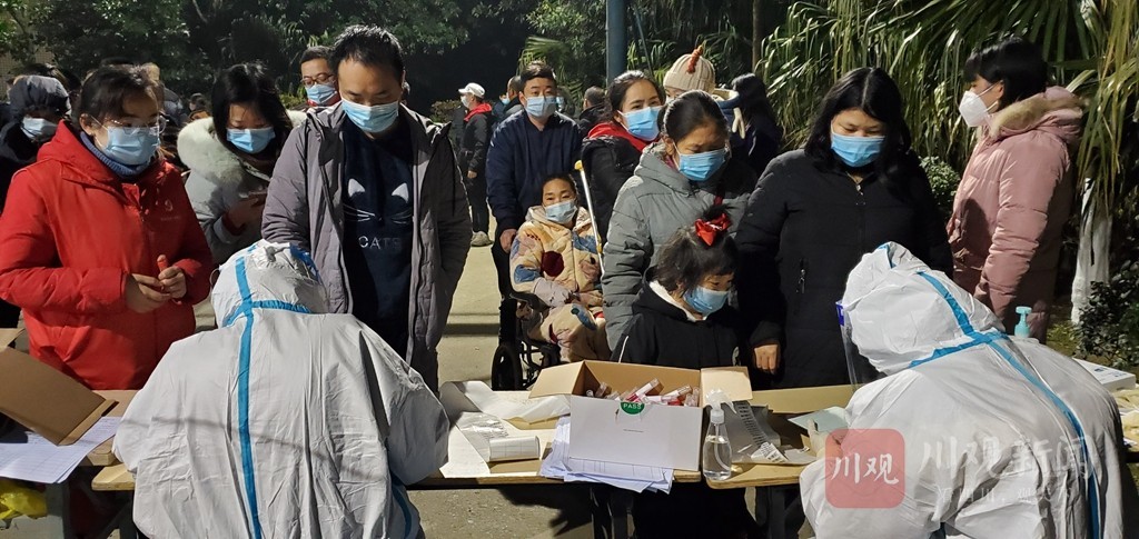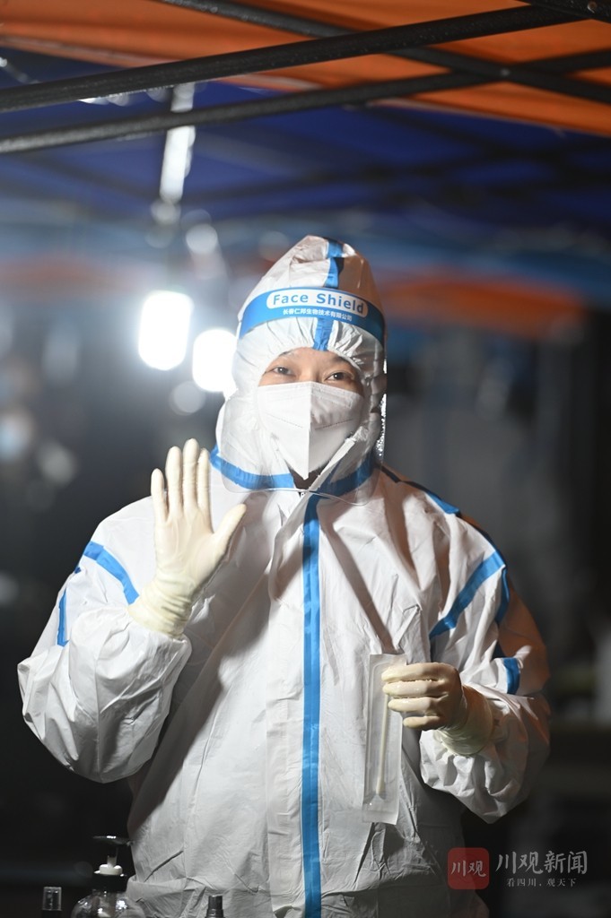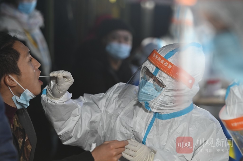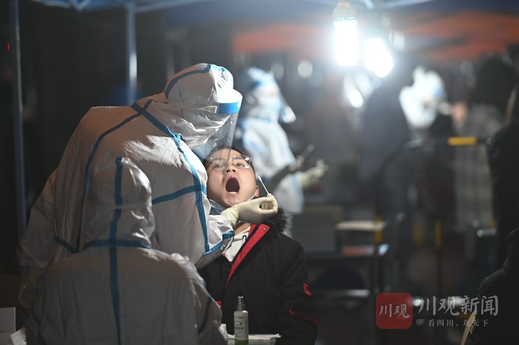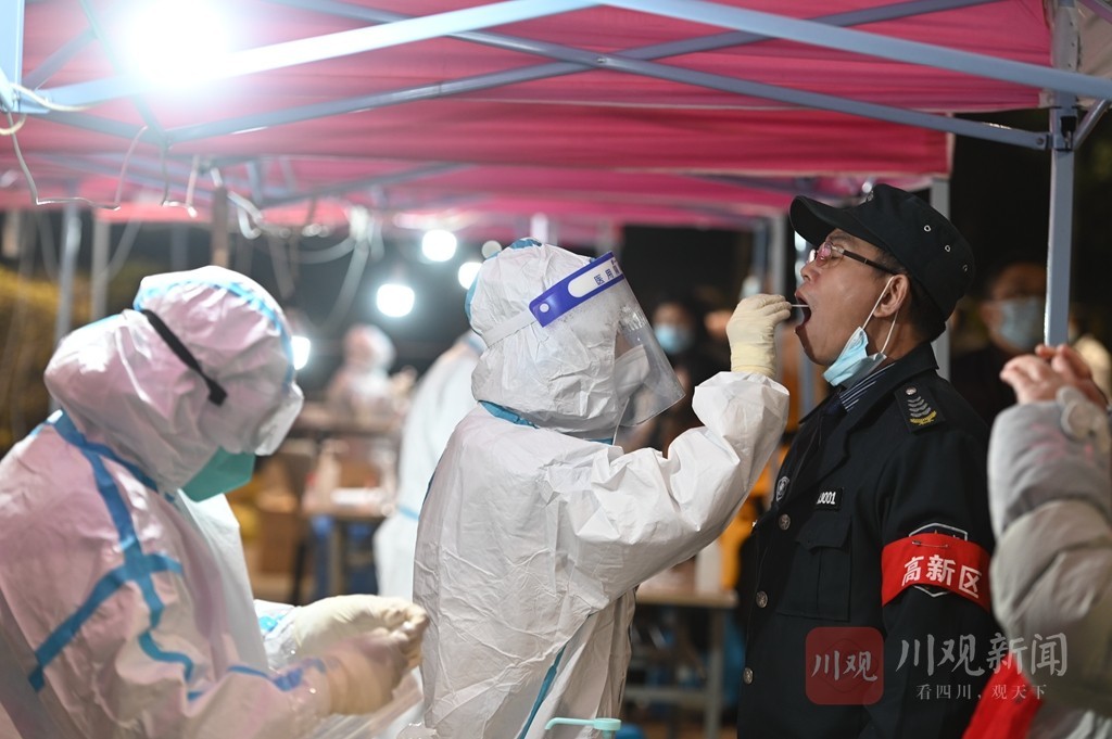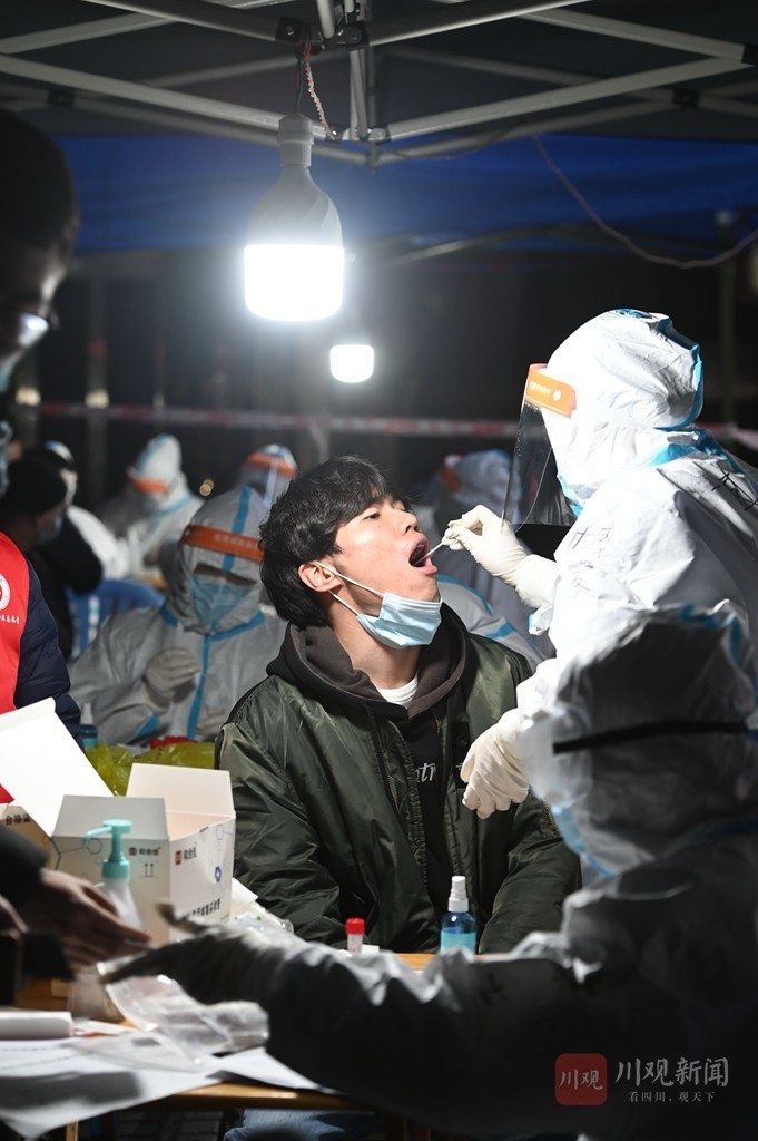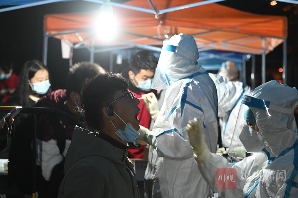 我们来到郫都区全员核酸检测的西华大学采样点、中铁银杏广场采样点、三观社区党群服务中心采样点、幸福路小游园采样点、上锦园二期采样点等十余个点位