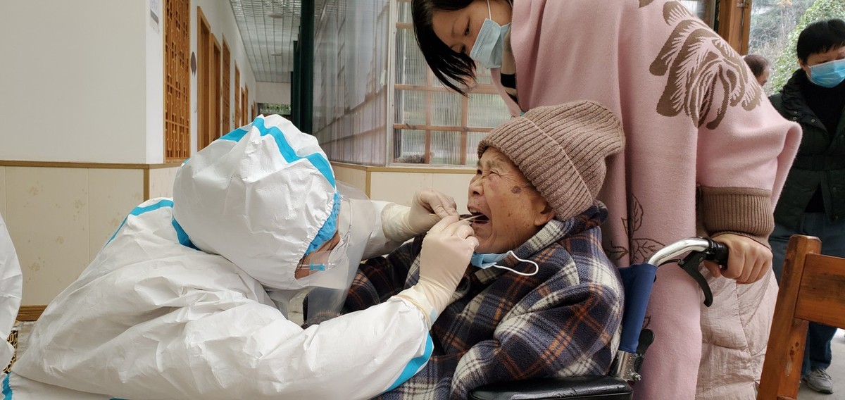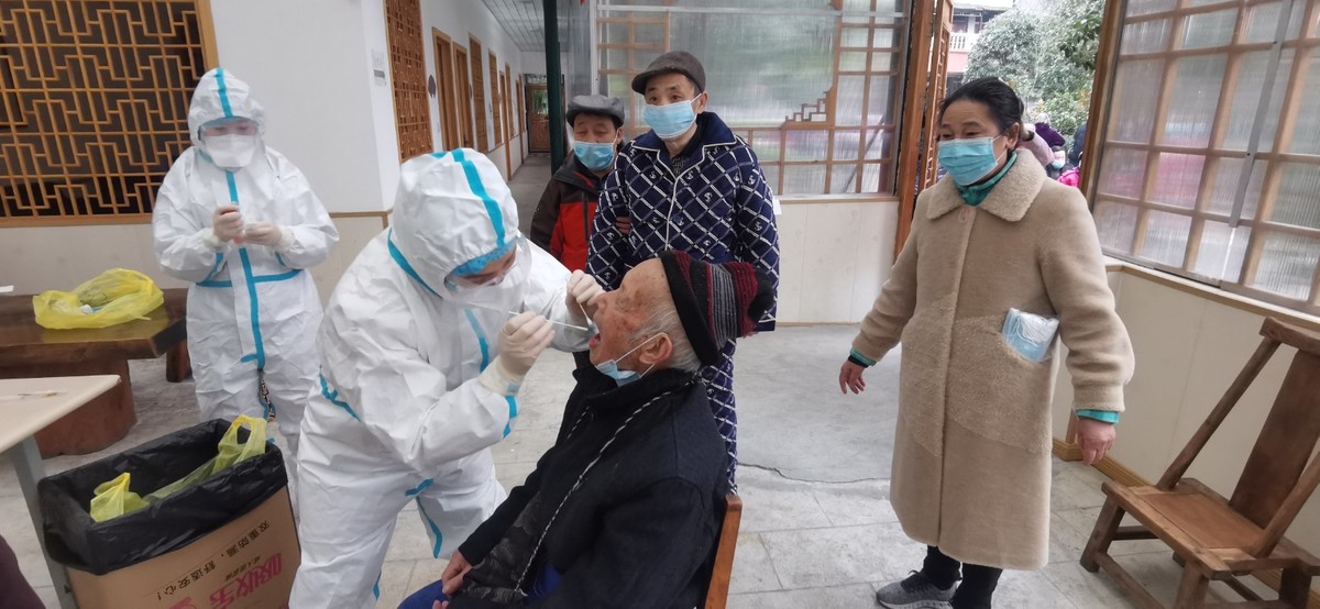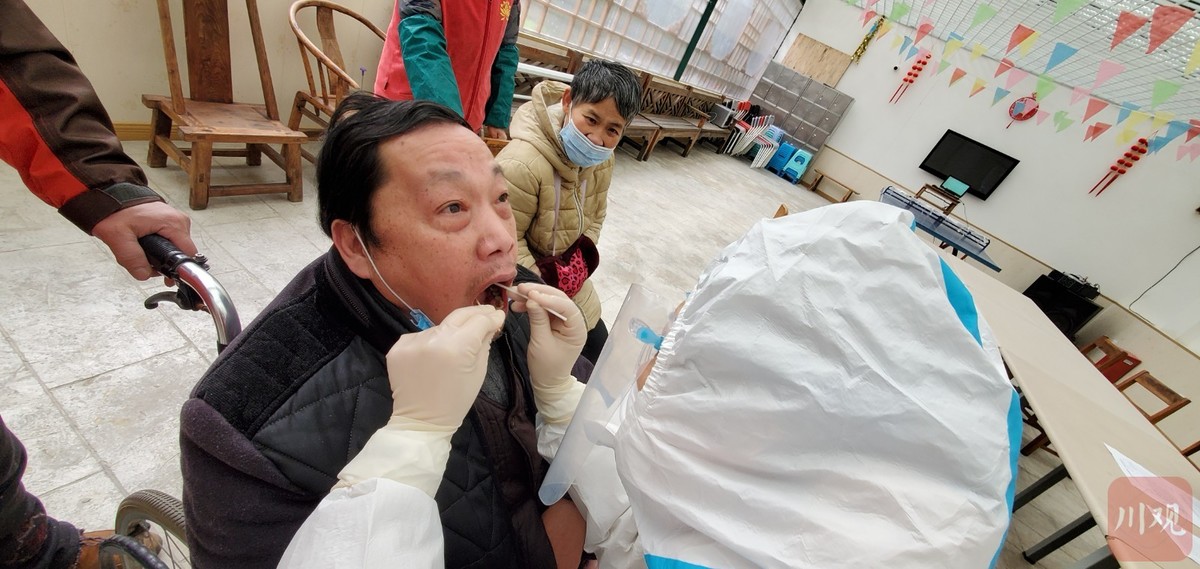 12月12日,记者跟随简阳市医疗支援队,来到位于郫都区金沙社区的平乐老年康乐苑,上门为这里的老人进行采样。