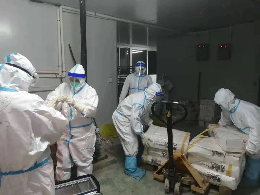 12月11日下午,成都东部新区5家医疗机构24名医务人员紧急集合,对涉事冷冻货物进行第二次全面核酸采样。截至12月12日凌晨2时,医务人员共检测样本990件、采样1980个点位。12月12日上午,核酸检测结果全部阴性。