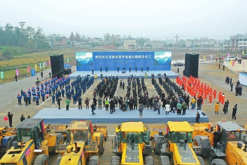 12月7日,四川开江至重庆梁平高速公路联合开工仪式在川渝交界处举行。 陈龙摄