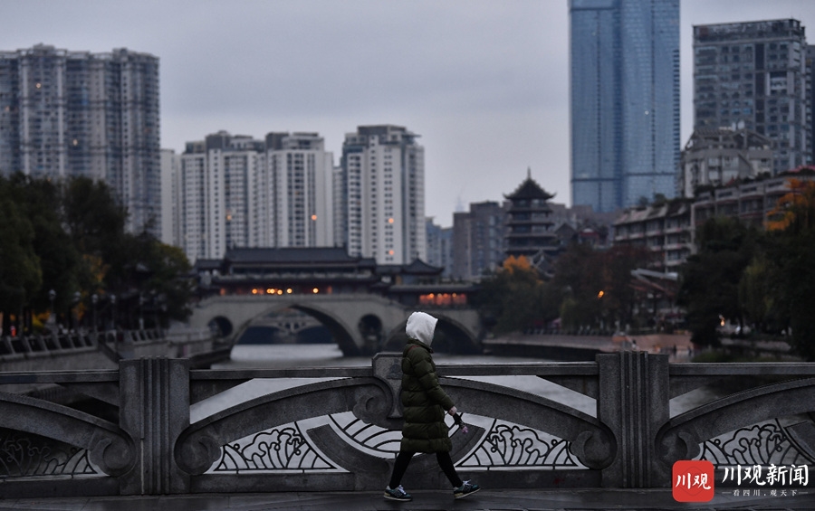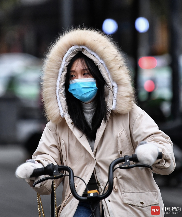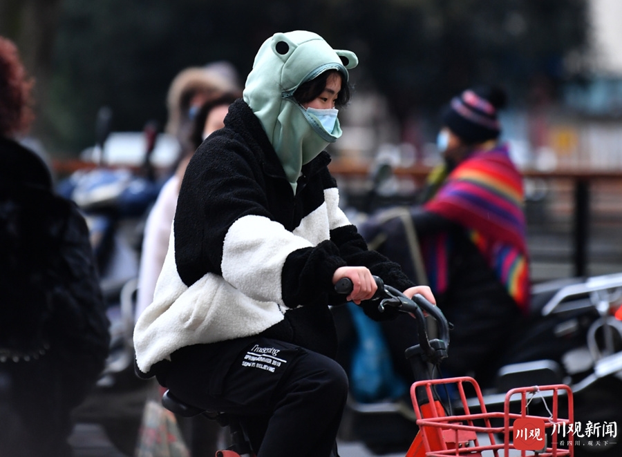 12月14日早晨,寒潮发力。成都市区温度只有3℃。在上班路上市民穿上厚厚的羽绒服,戴上棉帽,想出各种办法来抵御瑟瑟寒风。据省气象台预报,在接下来几天,寒潮将继续发力,成都市区气温会创下半年新低,最低气温只有1℃左右。