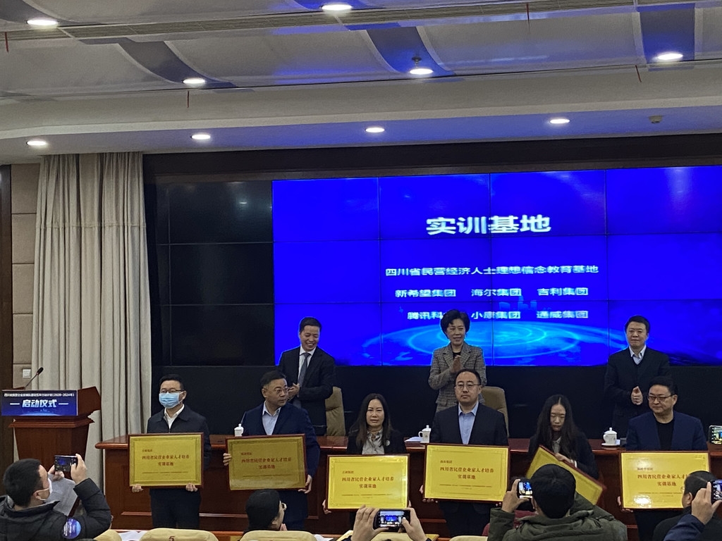 仪式上,还公布并授牌合作基地和实训基地名单,合作基地包括中共四川省委党校、四川省社会主义学院(四川省民营企业家学院)、西南财经大学、天府商学院、浙江大学、厦门大学、温州民营经济学院;实训基地包括新希望集团、通威集团、华为、阿里巴巴或腾讯、海尔集团、重庆小康工业集团、四川省民营经济人士理想信念教育基地。