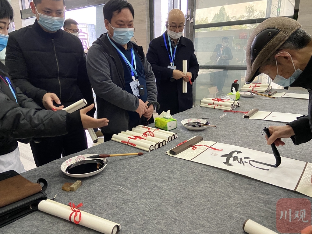 在了解“古賨国都”的同时,各位嘉宾还在手书“賨”字的环节大展身手,亲自写下这富含深厚文化底蕴的“賨”字,并将其作为此行的纪念。