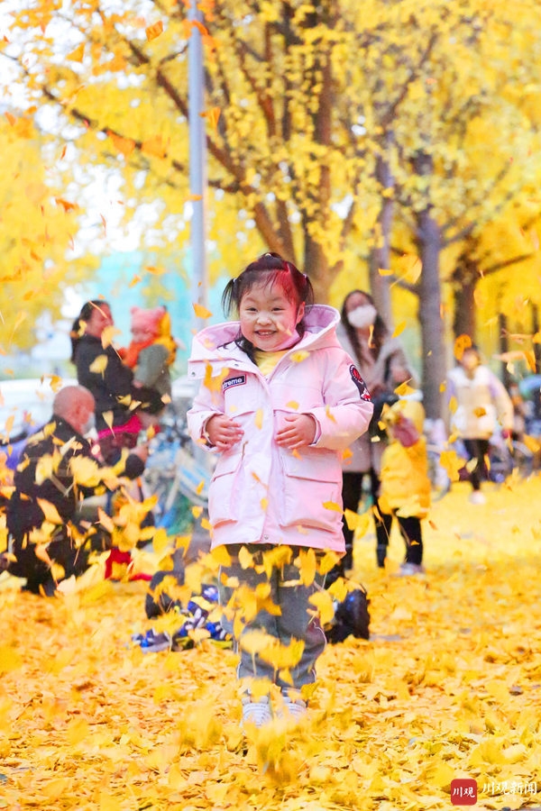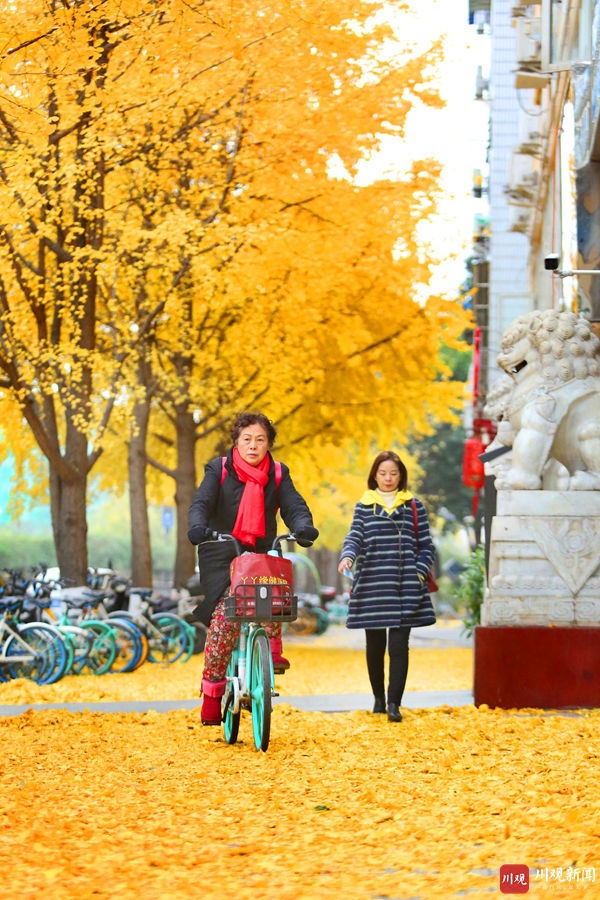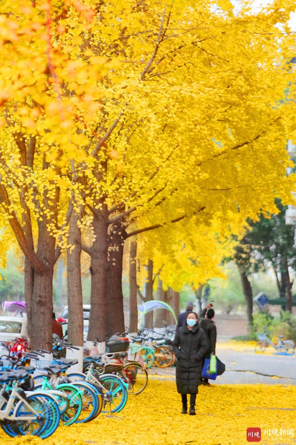 近日,由于气温陡降,绵阳体运村路的银杏树特别的漂亮,妆点着城市街道,给出行的市民带来愉悦。