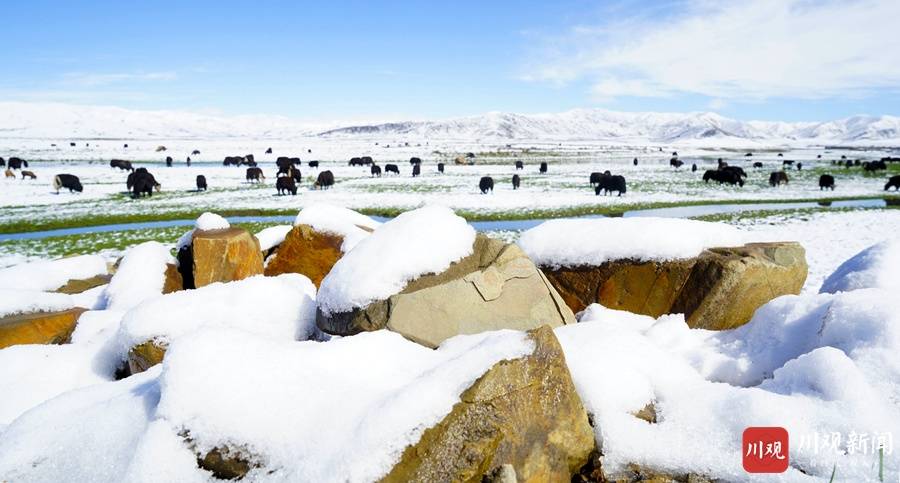 不远处,几骑牧马人在雪地里挥舞牧鞭