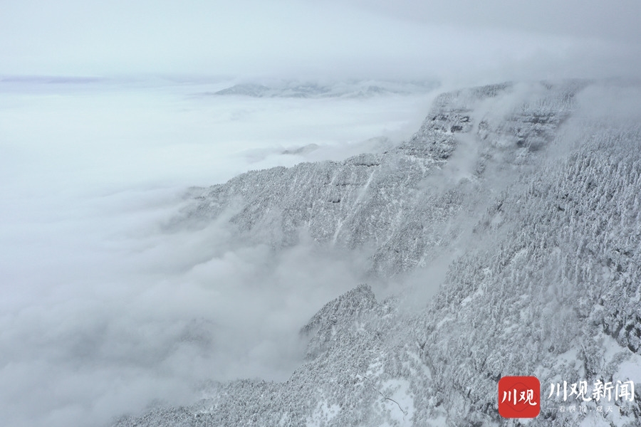 俯瞰眉山市洪雅县瓦屋山,银装素裹大美如画。