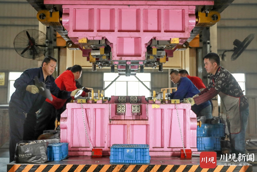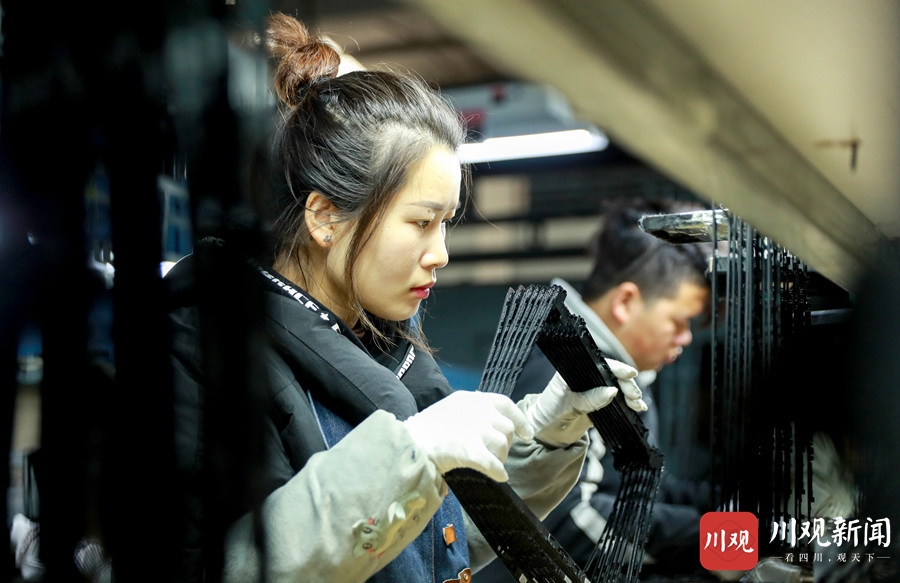 华蓥市冬闲的农民在家门口的机械加工厂生产线上忙碌。