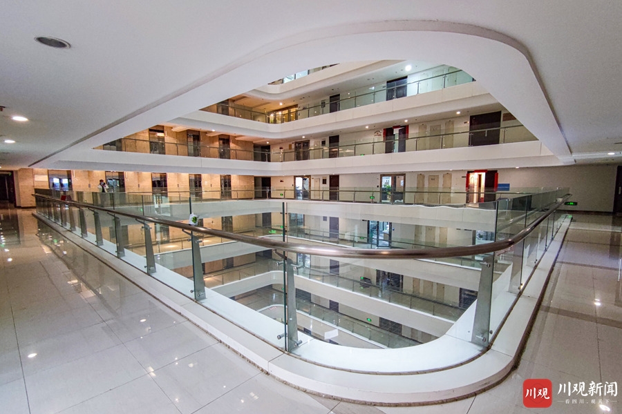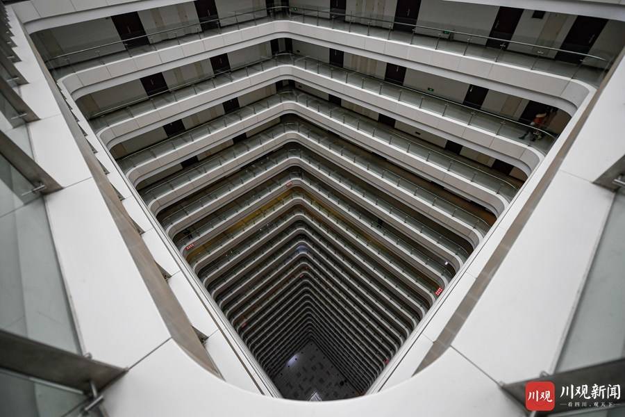 12月17日,记者实地探访被称为“成都版盗梦空间”的茂业中心写字楼。从茂业中心AB栋进入,乘坐电梯直达30楼,往下俯拍非常有视觉冲击力,足以表达建筑的形体轮廓,质感色彩。