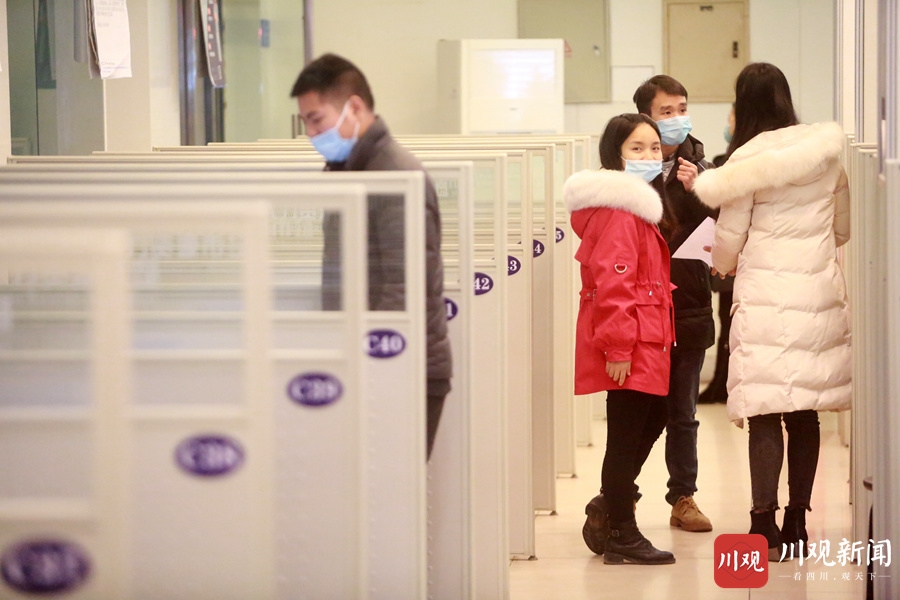 宜宾市翠屏区的四川川南人力资源市场,用人单位工作人员正在向求职者介绍招聘信息。