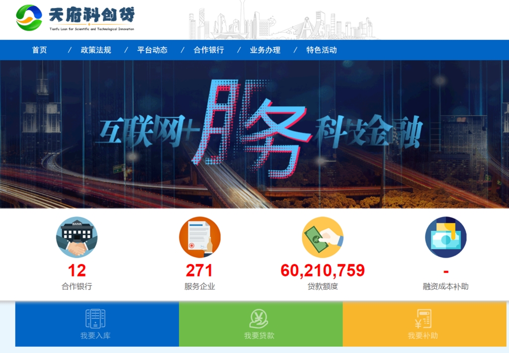 天府科创贷申请网络平台信息显示,目前已有123家企业提交了贷款申请,获得正式备案函企业71家,通过贷款额度51489万元,已放款23家贷款6021万元。