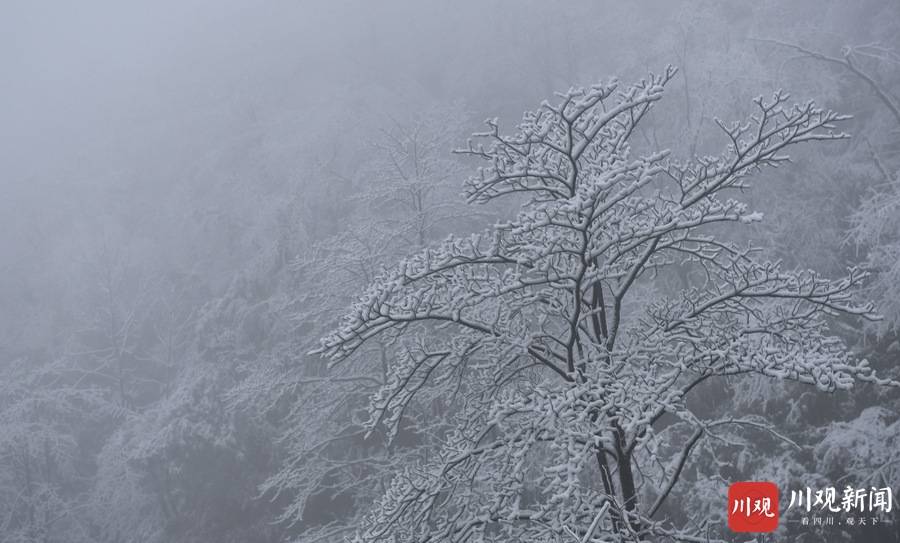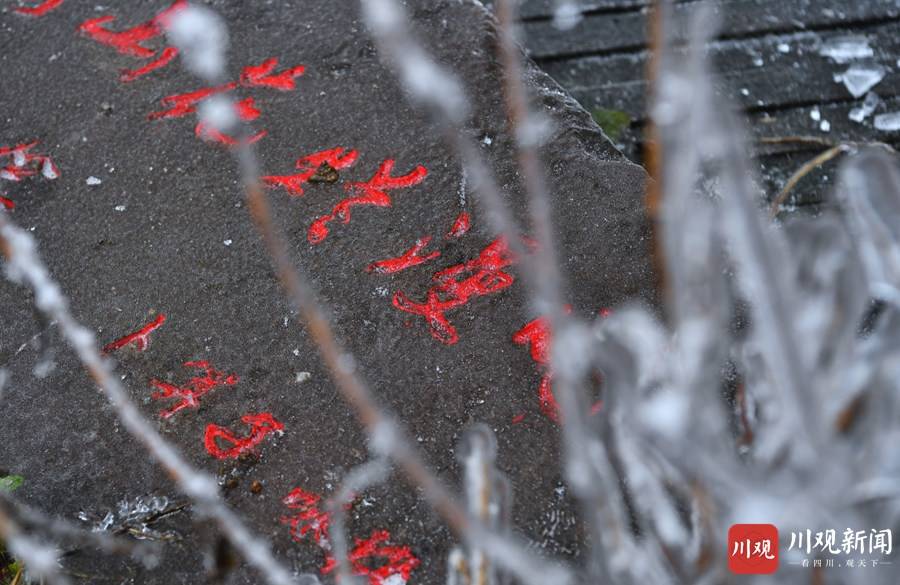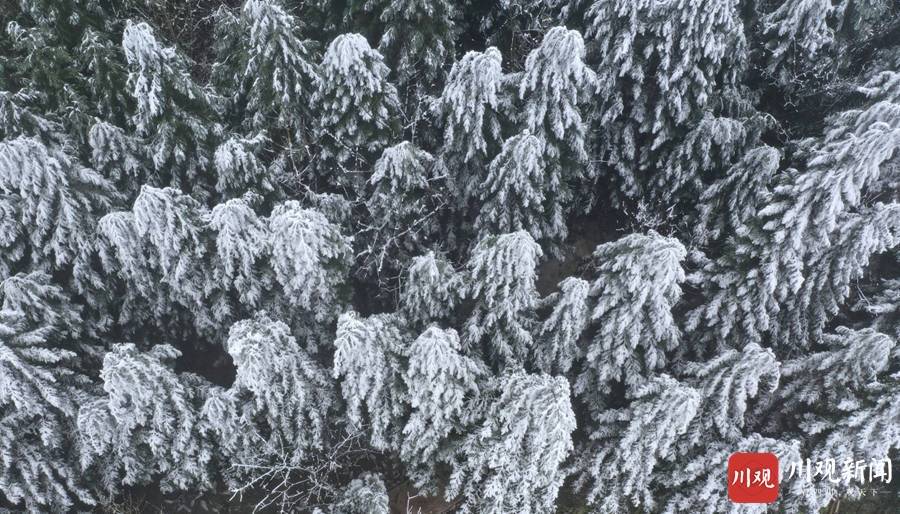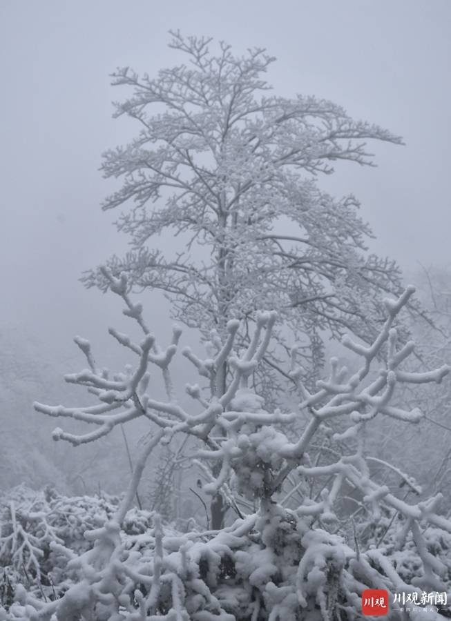 12月17日,近日的气温陡降,使得泸州市古蔺县部分高海拔地区降雪。位于黄荆镇香楠村镇的虎头山上,白雪砌成的银色森林,绿叶红花被冰雪包裹,形成雾淞。