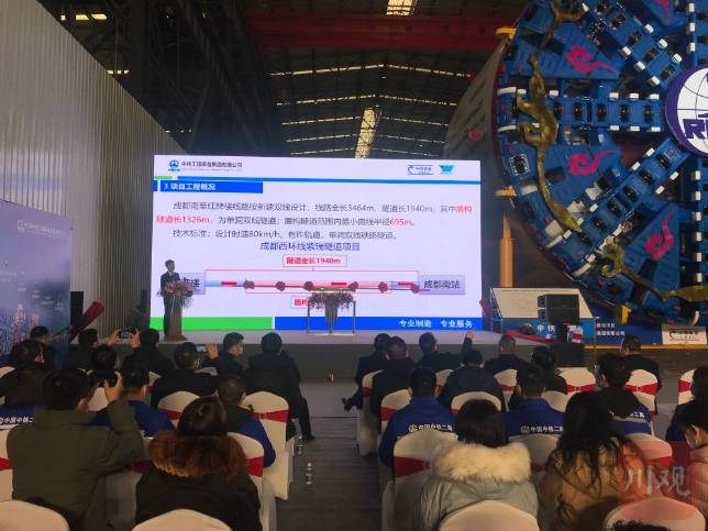 该台盾构机由中铁工程装备集团有限公司完全自主研发设计制造,开挖直径12.47米,整机总长约153米,总重量约2990吨,是国内首次在密集卵石地层施工的超大直径泥水盾构,该设备将应用于中铁二局成都至蒲江铁路站前工程项目紫瑞隧道施工。