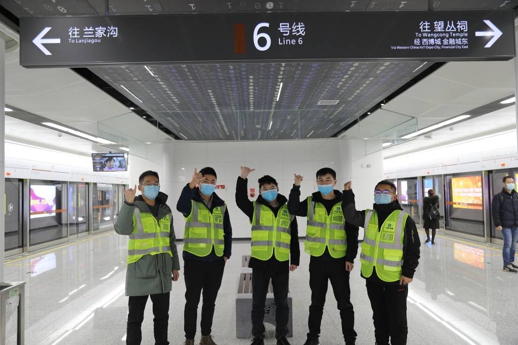 12月18日上午10时,新开通的成都地铁6号线三期回龙站,迎来首批特别“尝鲜”旅客——这是一群来自中建三局的建设者。 这一天,成都市地铁新线5线全开:成都轨道交通6号线一二三期、8号线一期、9号线一期、17号线一期、18号线。