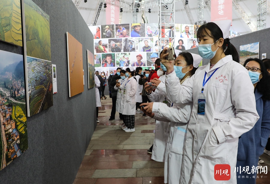 参观者在“向人民汇报”四川省脱贫攻坚主题摄影展上观赏展览作品。