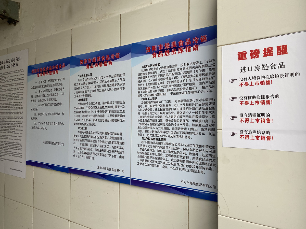 检查组先后走进资阳天王农贸市场的第三方冷链食品冻库、进口食品生产企业资阳市绿美食品有限公司等地,了解冷冻食品来源、疫情防控举措、追溯管理等情况,对现场发现的问题明确要求及时整改。