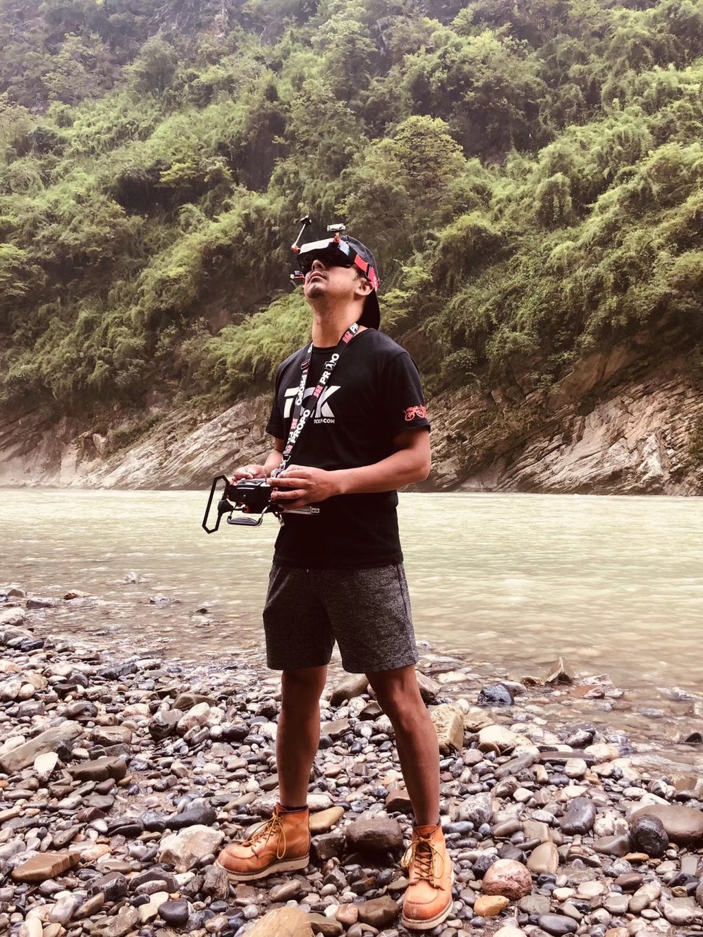 从大学毕业开始,余游便进入了成都一家地产公司做建筑设计,因为勘查楼体需要,他通过工作接触到了无人机航拍。2016年,在研究无人机拍摄技巧的过程中,一条新型飞行器的视频让余游颇为震撼。画面中,飞行器以第一视角穿越丛林、湖泊、又以超高的速度360度急停、急转,视觉冲击力极强。“那个视角太独特了,我完全被吸引进去,当时我就想立刻买一台来耍。”