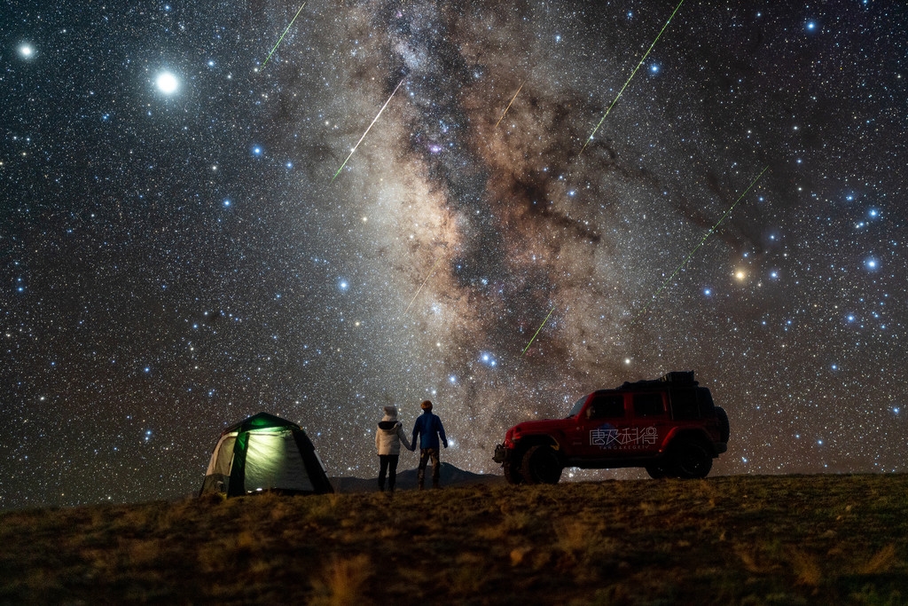 12月14日,无人机飞手王科在四川甘孜熬了两天两夜完成了他人生中第五场流星雨的拍摄作品,在12月17日接受记者采访的前一晚,他加班整理拍摄素材到凌晨3点,为了遮住自己的黑眼圈,不近视的王科特意戴了一幅平光镜。