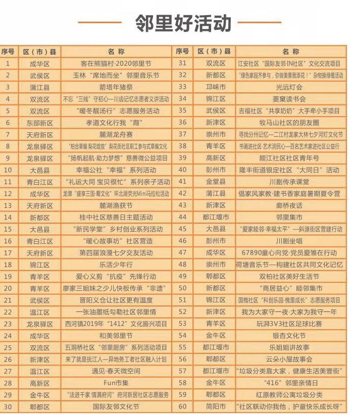 此外,12月22日也是“成都社区邻里节”,意在号召全市居民朋友们走出家门,邻里间相互搭把手,在参与社区志愿服务活动中开展邻里活动,增进邻里认同。