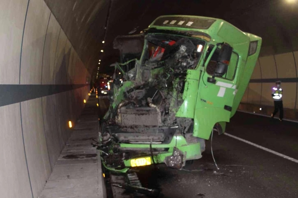 公安交警部门通过调查取证发现:此事故系后车驾驶员驾驶制动不符合国家标准的车辆上道路行驶,在隧道行驶过程中未开启车灯,发现前方车辆后未及时采取有效措施,前车驾驶员在车辆发生故障后未按规定摆放警示标志、人员未迅速转移至安全地带引发的交通事故,造成一人死亡。