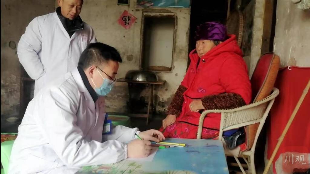 渠县琅琊镇官仓村,住有4000多村民,多为家中留守的老人和娃娃。李靖和另几名同事是这个村的家庭签约医生,负责指导村民的用药和健康档案管理。每月必须挤出时间进村三四次,跟踪掌握村民的健康状况。