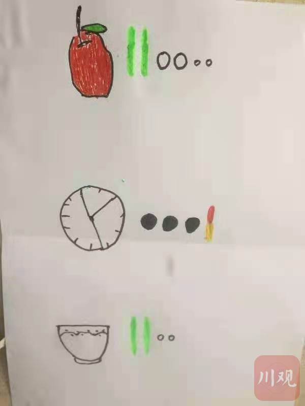 “看到这个图过后,就按这个图上去拿,就晓得怎么吃了,也不会拿多、也不会拿少。”村民李淑华说。李靖没学过画画,为画好这幅简单的手绘图,他用空闲时间,上网学习临摹时钟、饭碗和红枣简笔画,经多次尝试后成功画出。