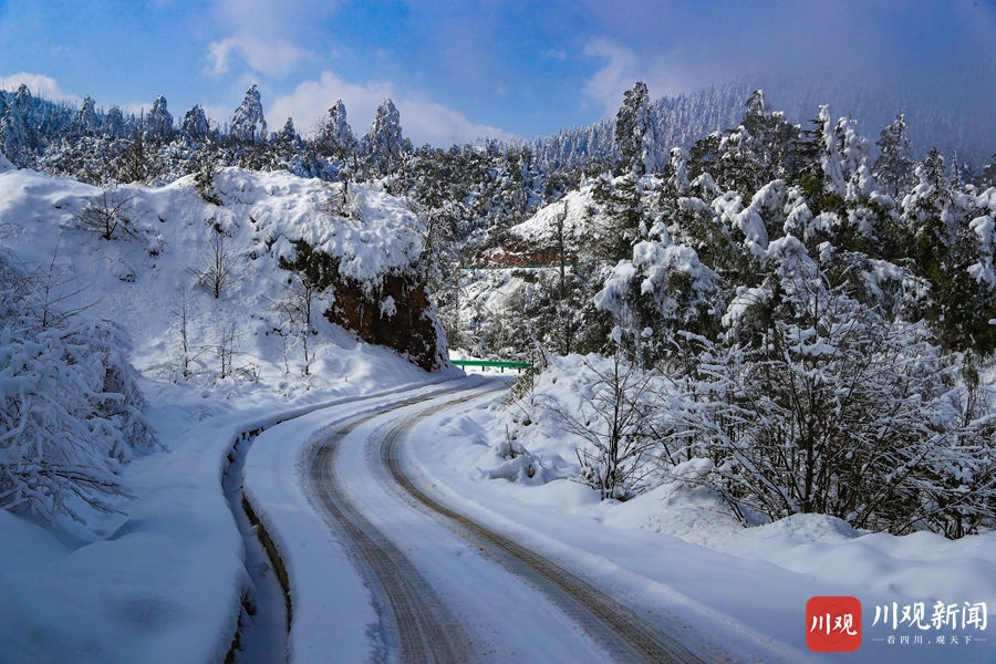 12月22日,随着连日来的低温降雪,雅安荥经县龙苍沟国家森林公园内漫天冰雪,变成了一个纯净的童话世界。
