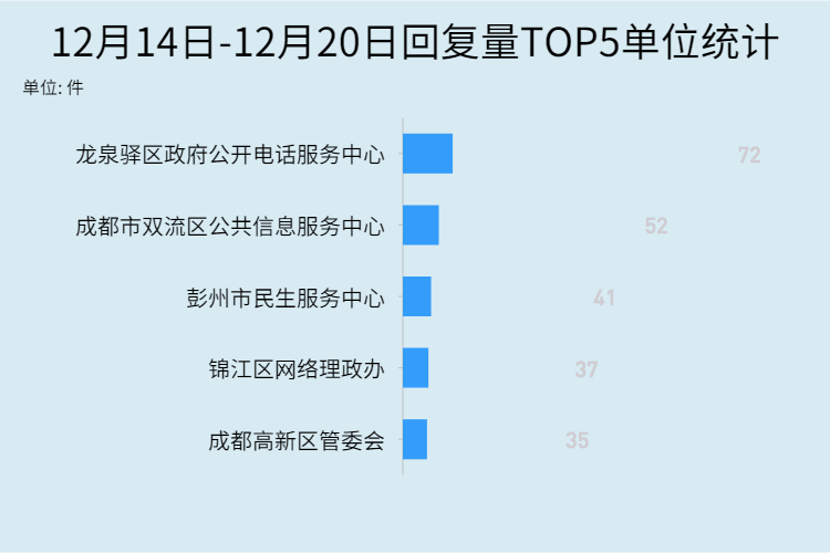 从具体接件转办单位来看,全川转办回复量排名上前五的单位分别为: