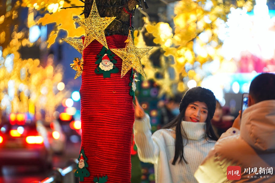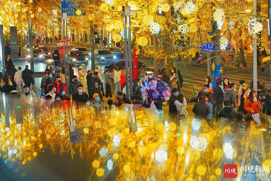 视频丨成都太古里纱帽街 璀璨灯火照亮平安夜