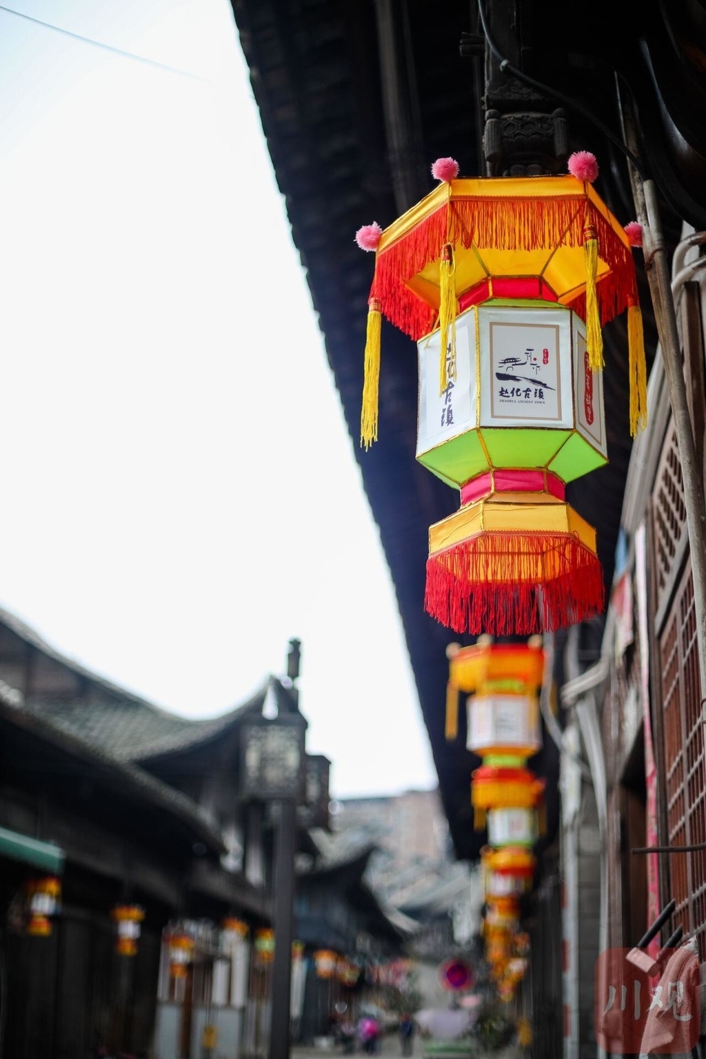 隆冬时节,富顺县赵化古镇大街小巷悬挂起一盏盏花灯,把古镇装扮一新,也平添了几分暖意。
