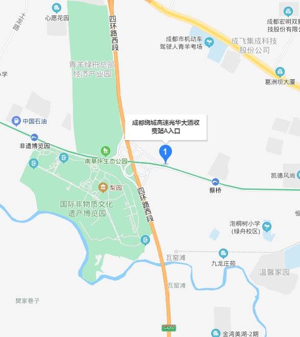 该收费站及互通位于成都绕城高速公路与成都市光华大道交汇处,以全互通式方式上跨光华大道,下穿绕城高速公路。互通立交桥宽10—15米,建8条匝道和4条集散车道,设置匝道收费站4处,23条收费车道。