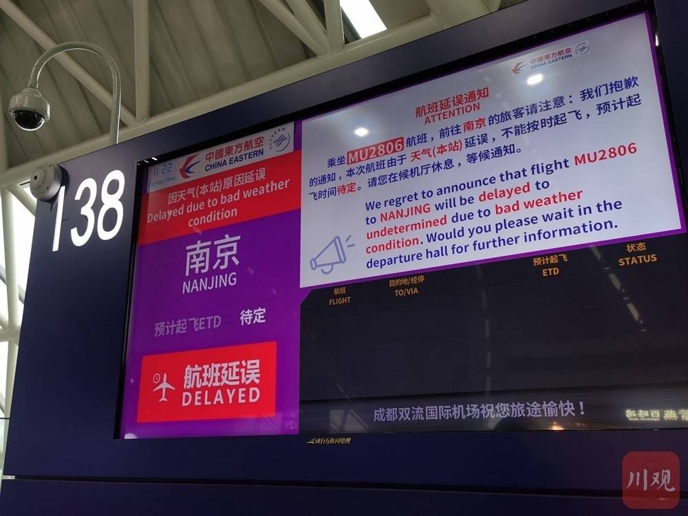 记者了解到,双流机场已于09:00启动大面积航班延误黄色预案(黄色预案:即当某时刻或预计1小时候后延误或取消航班达到50架次则启动)。