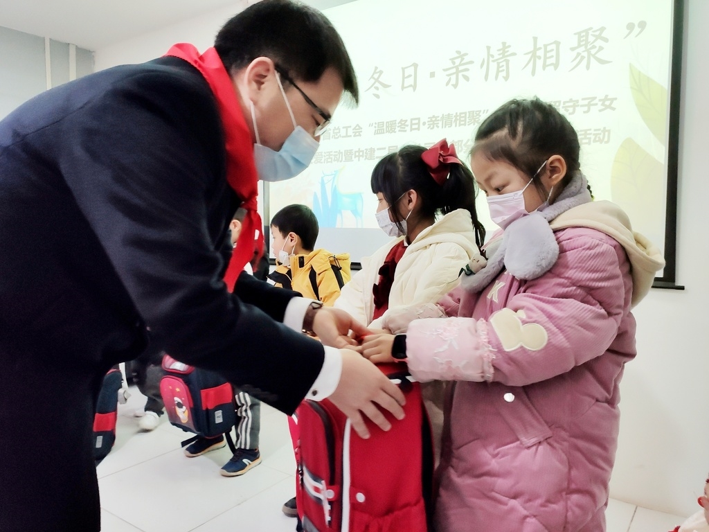 活动上,该分公司党委副书记、纪委书记、工会主席常逢杰表示,奋斗在生产一线的建设者们是城市的建设者、是企业的发展基石,关爱农民工留守子女、关爱一线建设者是央企的责任与使命,他代表分公司向冬日里奋斗在一线的建设者们致以崇高的敬意。工会“娘家人”为小朋友们发放了学习礼包、爱心包,并为现场职工和农民工代表送上了节日慰问品。