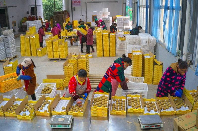 选拣、分装、打包、贴标……12月24日,名山区万古镇安吉村,蒙和源农民种植专业合作社生产车间内一派热火朝天,20余名工作人员分工有序,一个个新鲜猕猴桃陆续被打捆装车。“这次要发出15吨猕猴桃,都是来自网上的订单,明天就发往广州……”合作社理事长卢怀超一边向记者介绍,一边仔细检查着包装盒里猕猴桃的品相。